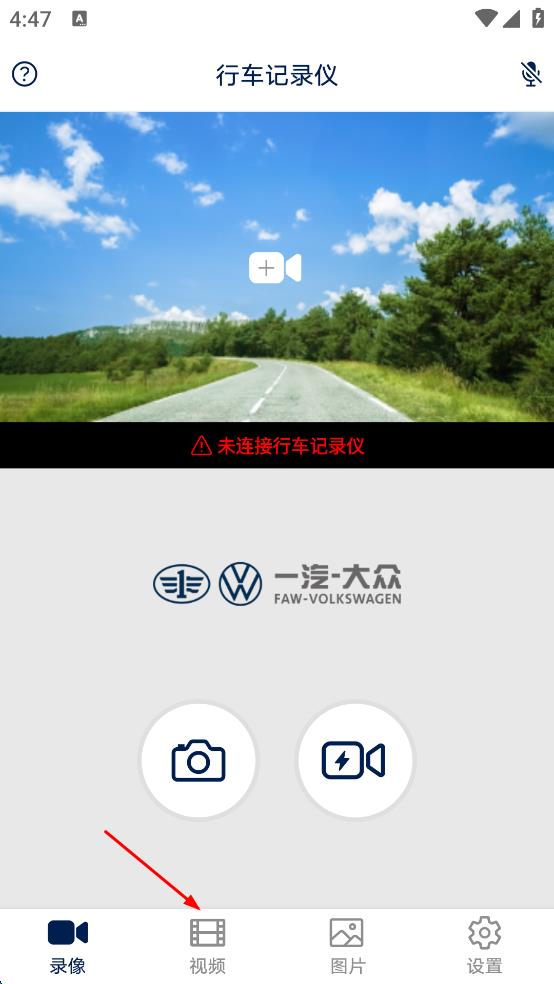 3、完成連接操作后,回到行車(chē)記錄儀主界面,點(diǎn)擊底部“視頻”選項(xiàng),進(jìn)入視頻頁(yè)面。