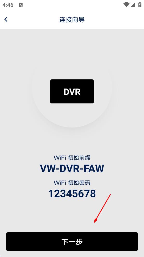 2、在連接向?qū)ы?yè)面,查看WiFi初始前綴和初始密碼等信息,然后點(diǎn)擊“下一步”按鈕。
