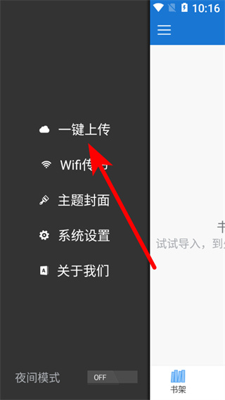 1、在閱讀APP書(shū)架頁(yè)面,點(diǎn)擊左上角三橫線按鈕,展開(kāi)側(cè)邊菜單。