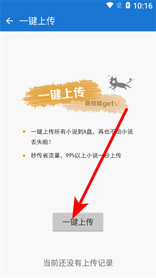 3、在一鍵上傳頁(yè)面,點(diǎn)擊一鍵上傳按鈕,即可開(kāi)始上傳小說(shuō)。