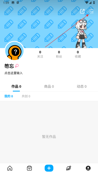 1、打開(kāi)創(chuàng)游世界APP,進(jìn)入個(gè)人頁(yè)面后,點(diǎn)擊右上角的菜單按鈕。