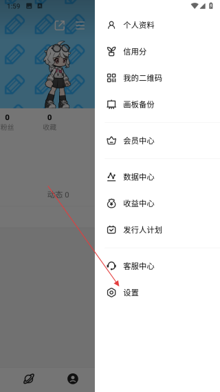 2、在彈出的側(cè)邊菜單中,點(diǎn)擊設(shè)置選項(xiàng)。