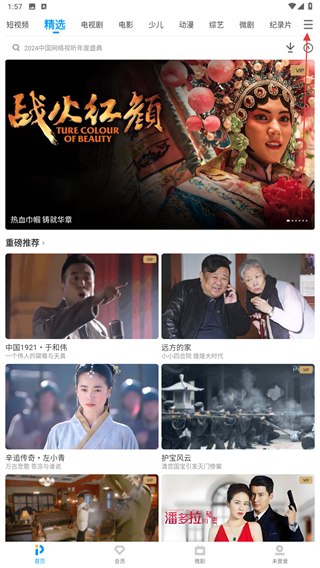 1、啟動PP視頻的應(yīng)用,進(jìn)入首頁點(diǎn)擊右上的功能按鈕。