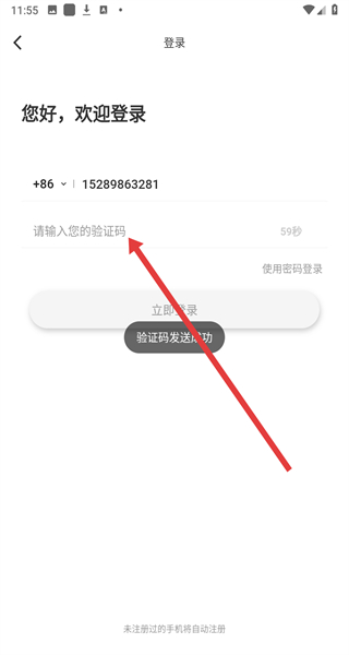 4、在輸入手機(jī)號和驗(yàn)證碼后,點(diǎn)擊立即登錄按鈕即可完成賬號登錄。