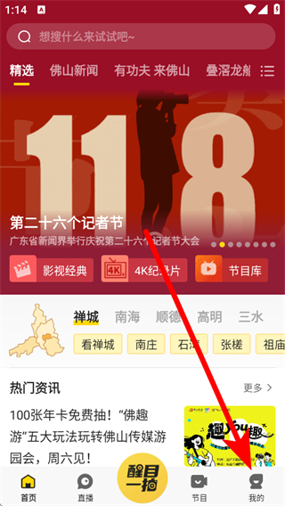 1、在看佛山app首頁,點(diǎn)擊右下角我的選項,進(jìn)入個人界面。
