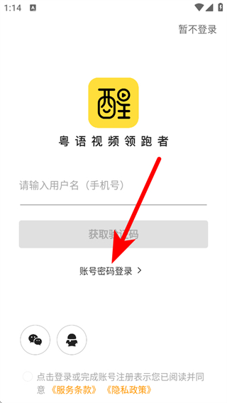 3、在登錄頁面,點(diǎn)擊賬號密碼登錄選項,進(jìn)入賬號密碼登錄界面。