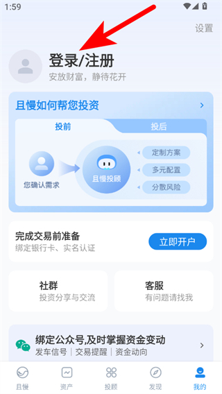 1、在且慢app首頁,點(diǎn)擊右下角我的選項(xiàng),進(jìn)入個人中心界面。