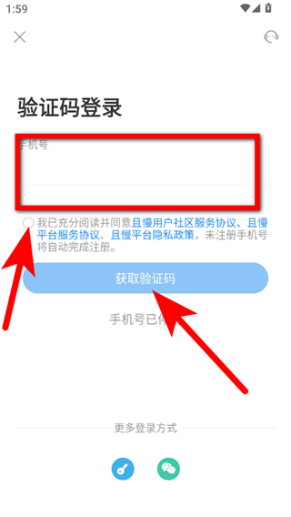 3、在登錄頁面,輸入手機(jī)號,勾選同意協(xié)議后點(diǎn)擊獲取驗(yàn)證碼。