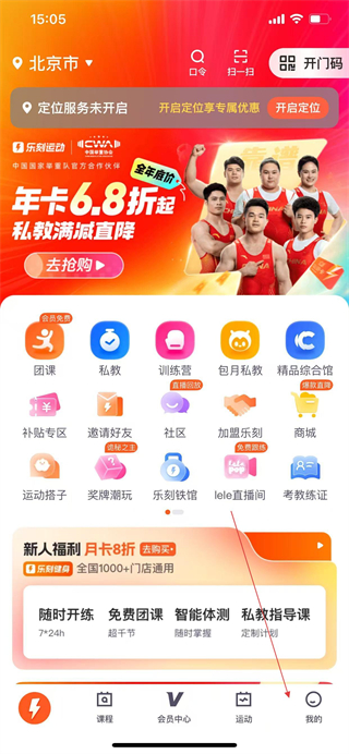 1、首頁(yè)定位調(diào)整到城市范圍,可以快速查看離自己最近的門店、可約團(tuán)課及推薦的教練