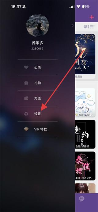 2、在功能菜單中點擊設(shè)置,進入設(shè)置頁面。