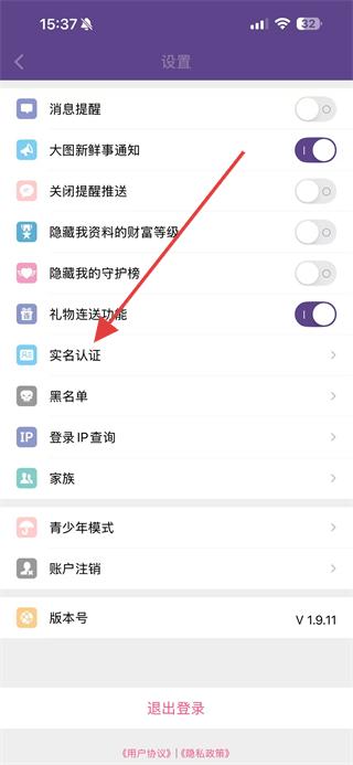 3、在設(shè)置頁面點擊實名認證,進入實名認證頁面。