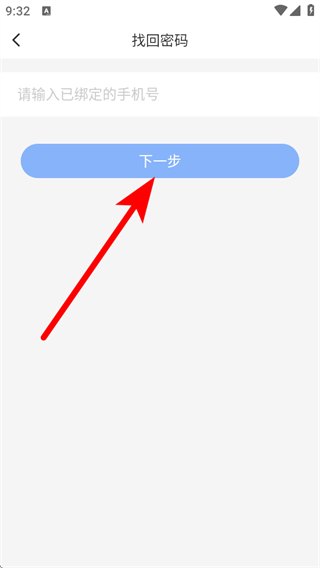 2、進入找回密碼的頁面,輸入已綁定的手機號,點擊下一步。