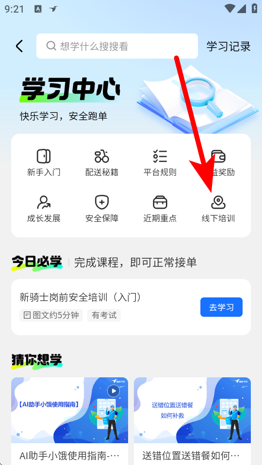 3、在學(xué)習(xí)中心頁(yè)面,可以選擇線下培訓(xùn)板塊,或者選擇課程。