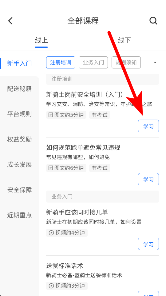 4、進(jìn)入課程列表后,點(diǎn)擊課程學(xué)習(xí)按鈕,即可開(kāi)始培訓(xùn)課程的學(xué)習(xí)。