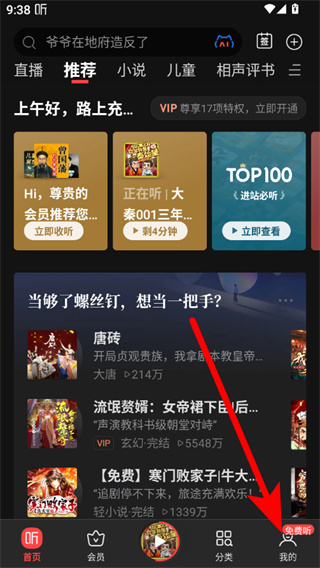 3、在APP主界面,瀏覽推薦的各類內(nèi)容,找到感興趣的音頻作品,比如“陰間神探”,點擊進(jìn)入該作品的詳情頁面。