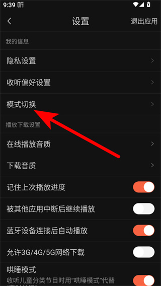 3、在設(shè)置頁面,點擊模式切換選項,彈出模式選擇菜單。