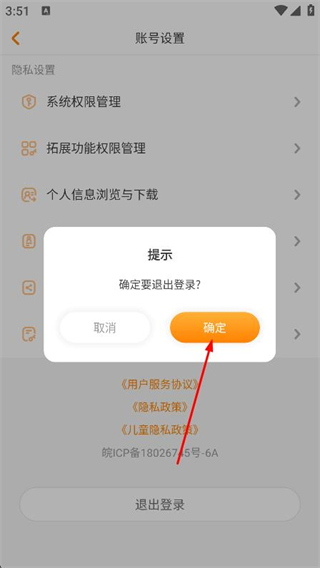 4、在提示彈窗中,點(diǎn)擊確定即可完成賬號(hào)退出。