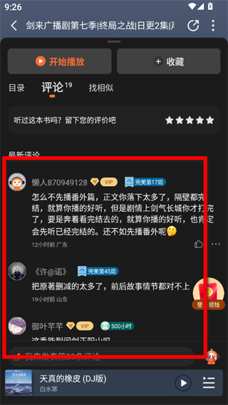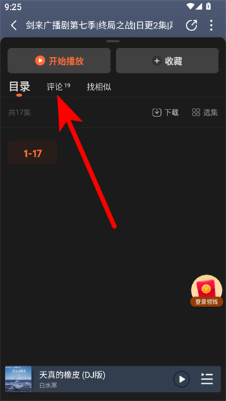 2、在音頻詳情頁(yè)面,點(diǎn)擊評(píng)論選項(xiàng),進(jìn)入評(píng)論頁(yè)面。