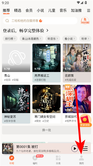 1、在懶人聽(tīng)書(shū)首頁(yè),點(diǎn)擊目標(biāo)音頻,進(jìn)入音頻詳情頁(yè)面。