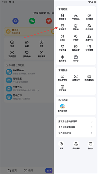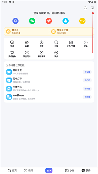 1、打開百度APP,進(jìn)入到首頁內(nèi)點(diǎn)擊右下角我的圖標(biāo)。