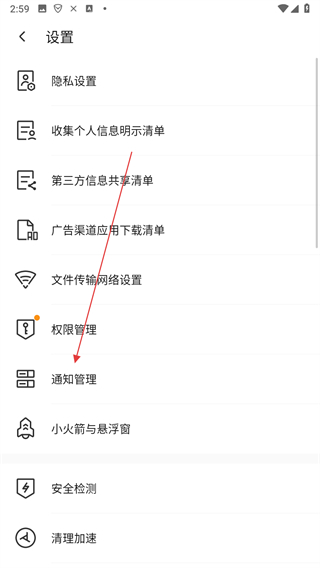 3、在設(shè)置頁面,點(diǎn)擊通知管理選項。