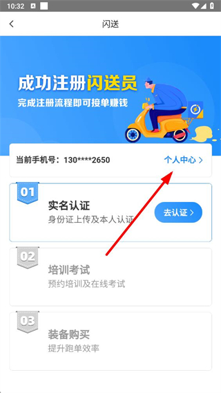1、在閃送員app界面點擊個人中心選項,進入個人中心頁面。