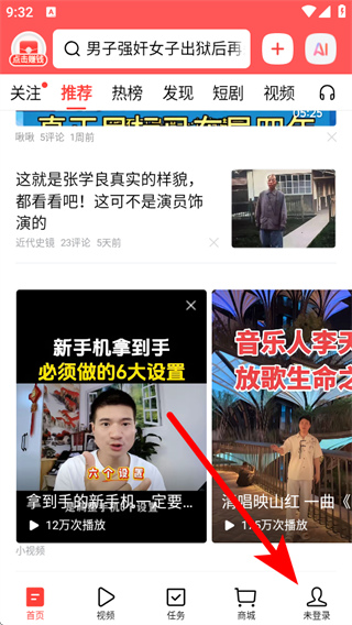 1、打開今日頭條APP,點擊底部導(dǎo)航欄的未登錄,進入個人頁面。