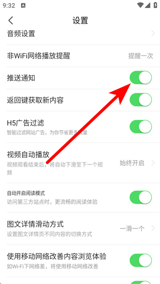 3、在設(shè)置界面中,找到推送通知選項,點擊開關(guān)按鈕將其關(guān)閉。
