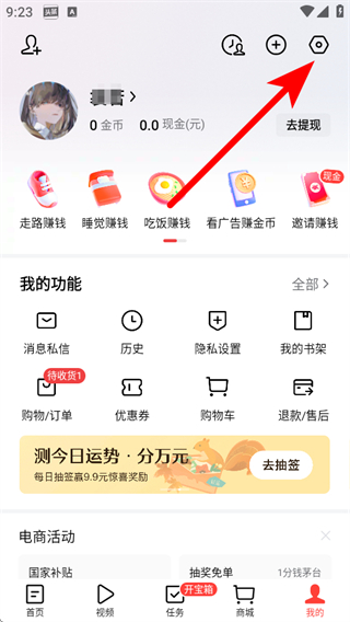 2、在個人頁面中,點擊右上角的設(shè)置圖標,進入設(shè)置頁面。