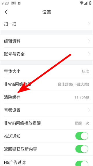 3、在設(shè)置的頁面,我們需要點擊清除緩存的這個選項。