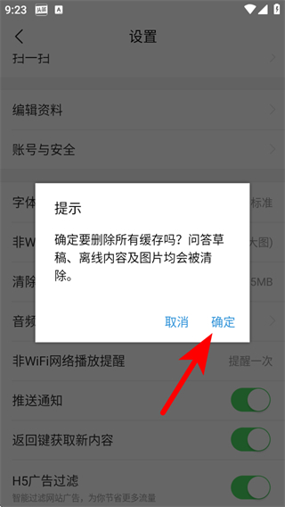 4、彈出確定要刪除所有緩存嗎提示框后,點擊確定完成操作。