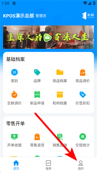 1、打開店務(wù)通APP,點擊右下角我的,進(jìn)入個人頁面。