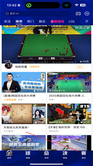 1、打開虎牙直播APP,找到想要觀看的直播間,點擊進入目標直播間頁面。