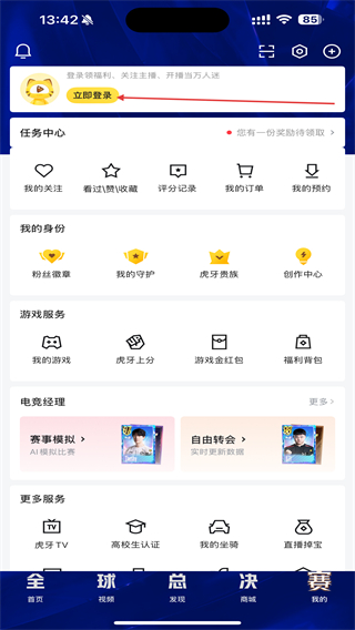 2、進入我的頁面內(nèi),點擊上方立即登錄的按鈕。