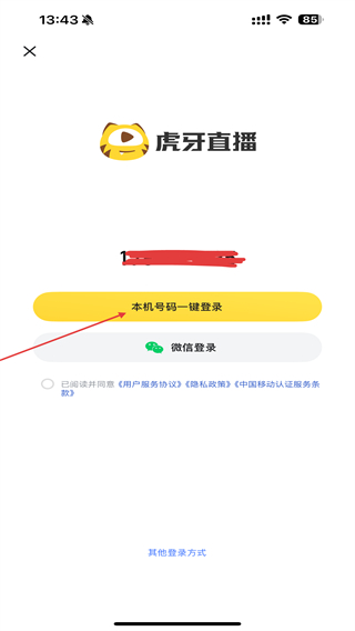 3、進入登錄的頁面內(nèi),點擊本機號碼一鍵登錄即可。