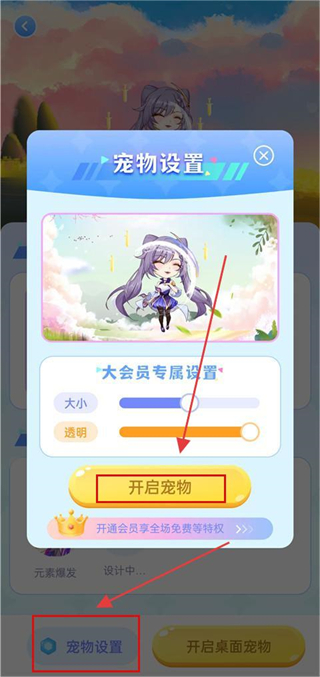 3、在寵物設(shè)置窗口中點(diǎn)擊開(kāi)啟寵物,即可在桌面設(shè)置該寵物。