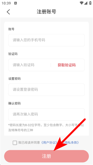 2、在登錄頁面,點(diǎn)擊注冊賬號的按鈕,進(jìn)入注冊賬號頁面。