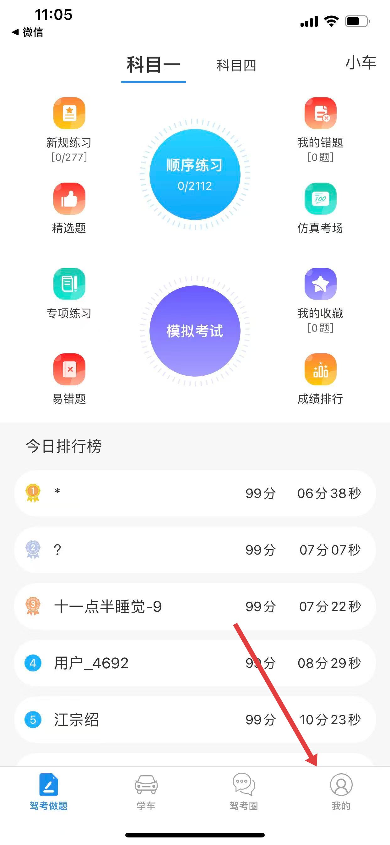 1、打開學車不APP,進入主界面,點擊底部導航欄中的我的。