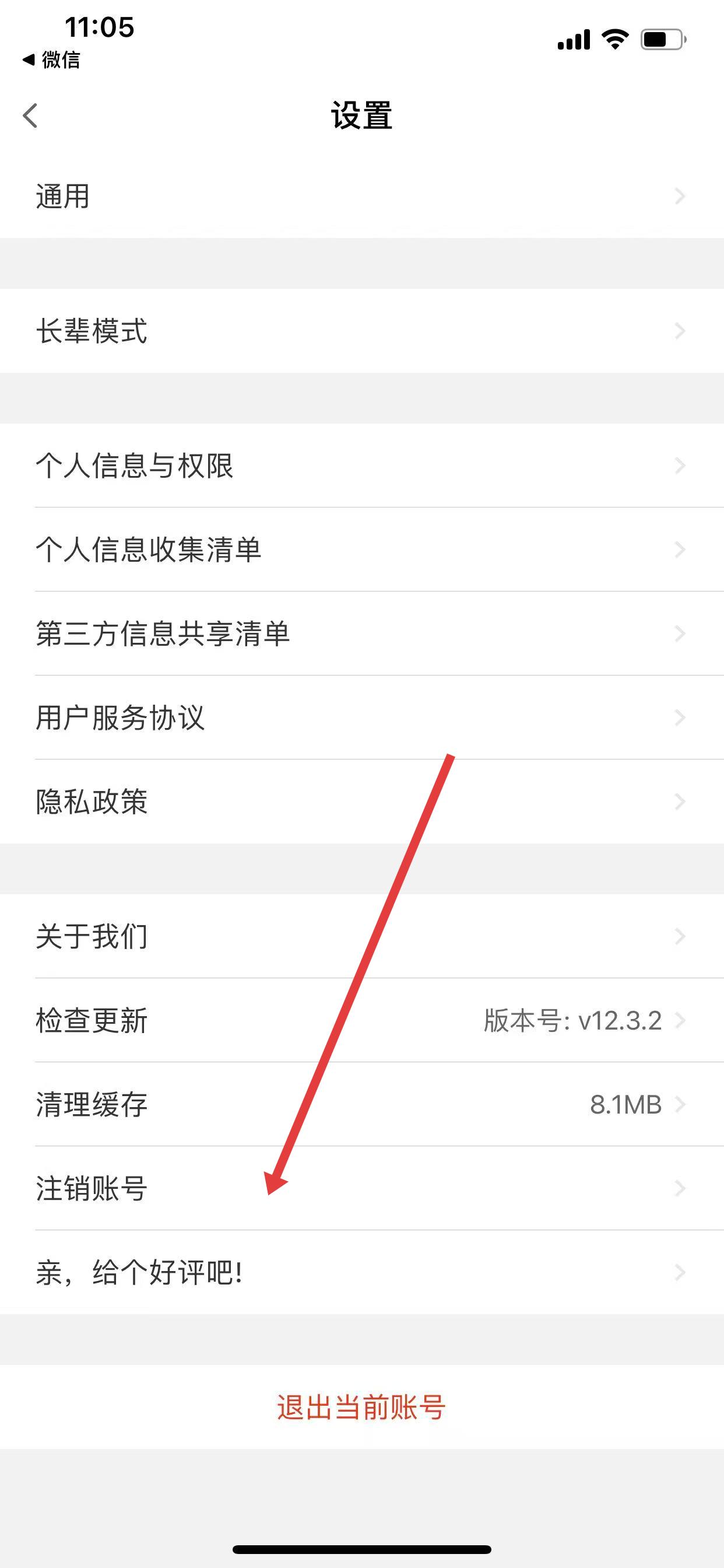 3、進入設(shè)置頁面后,下滑找到并點擊注銷賬號選項。