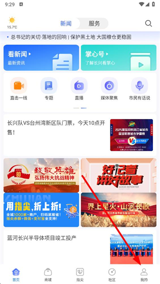 1、在掌心長興app首頁點擊我的選項,進入個人頁面。