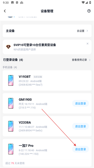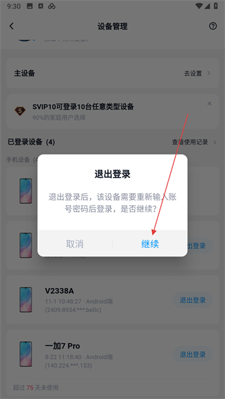 4、點(diǎn)擊設(shè)備的退出登錄,點(diǎn)擊繼續(xù)即可退出。