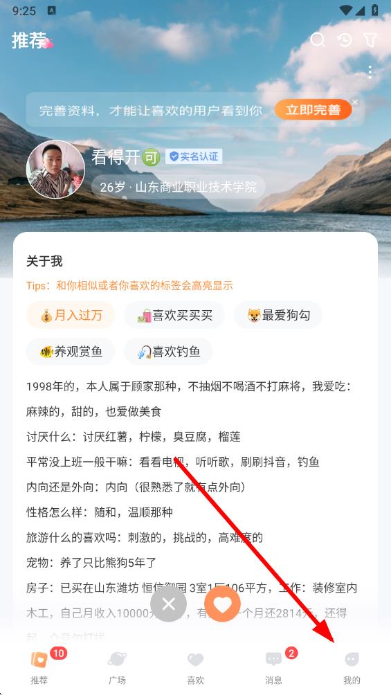 1、打開百合網(wǎng)app,點(diǎn)擊底部導(dǎo)航欄中的我的選項(xiàng)。