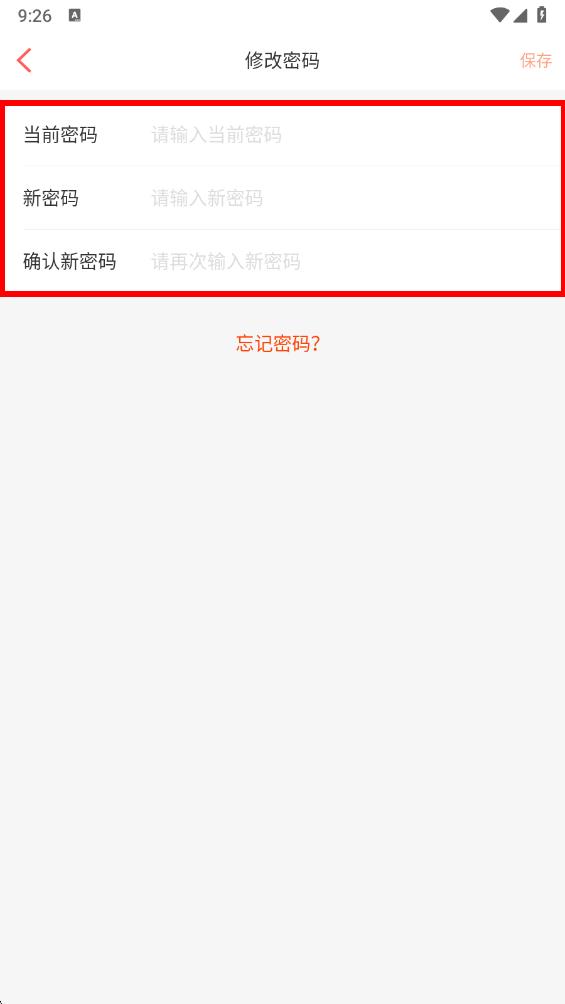 5、在修改密碼頁(yè)面輸入當(dāng)前密碼、新密碼和確認(rèn)新密碼后,點(diǎn)擊保存即可修改成功。