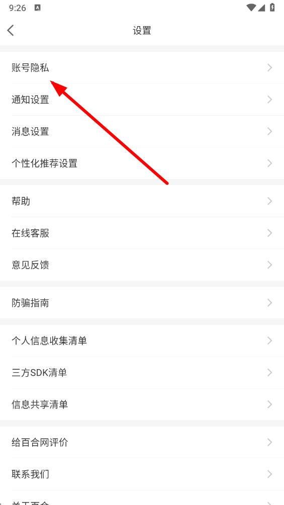 3、在設(shè)置頁(yè)面里,點(diǎn)擊賬號(hào)隱私的選項(xiàng)。