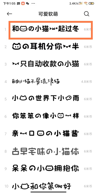 4、在可愛軟萌字體列表中,選擇喜歡的字體樣式,即可進(jìn)行字體更改操作。