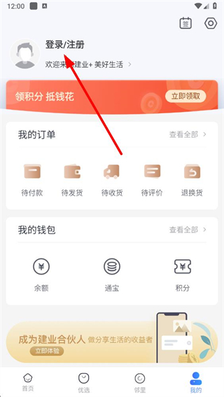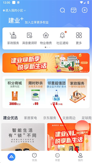 1、打開建業(yè)APP,點(diǎn)擊右下角我的進(jìn)入個(gè)人頁面。
