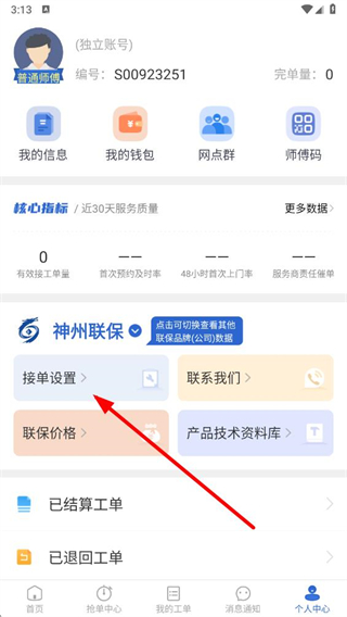 2、在個(gè)人頁面中,點(diǎn)擊接單設(shè)置選項(xiàng)。