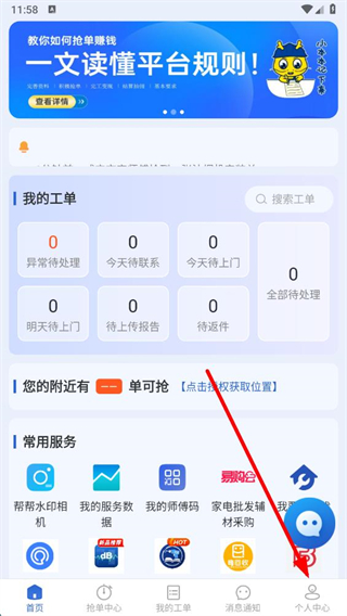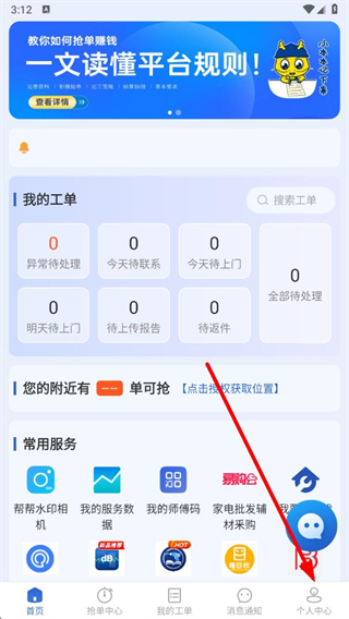 1、打開神州幫幫APP,點(diǎn)擊右下角個(gè)人中心進(jìn)入個(gè)人頁面。
