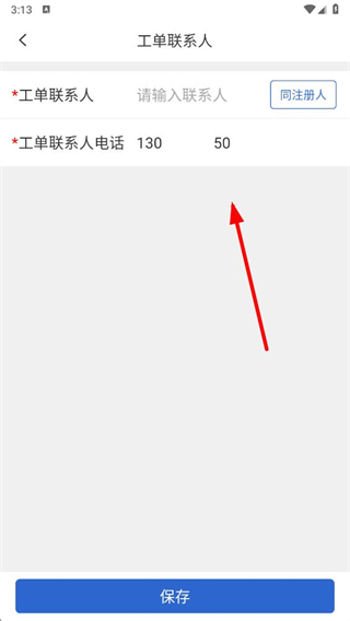 4、在工單聯(lián)系人頁面,修改工單聯(lián)系人電話,點(diǎn)擊保存按鈕即可完成接單電話修改操作。