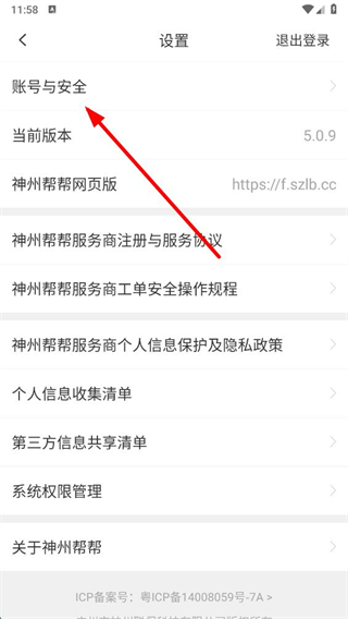 3、在設(shè)置頁面,點(diǎn)擊賬號(hào)與安全進(jìn)入相關(guān)設(shè)置界面。